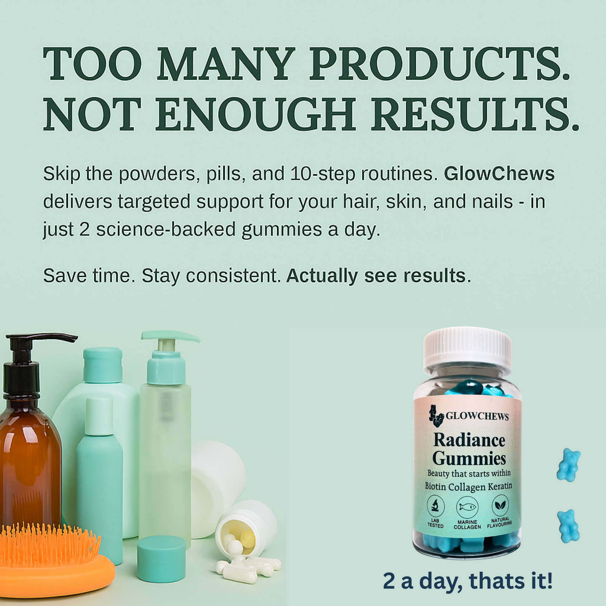 The nutrients in GlowChews target cellular function, not surface appearance — making them effective across all hair textures, skin types, and tones.